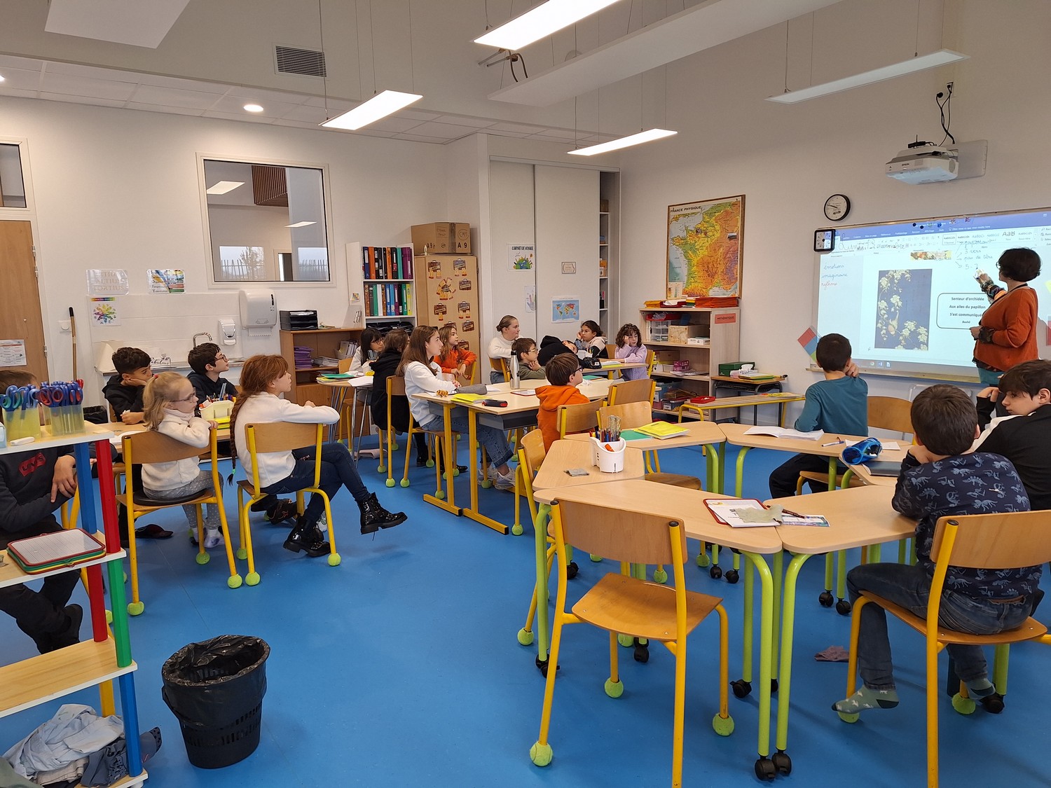 La pédagogie personnalisée et le travail en autonomie demande beaucoup de matériel de manipulation. C’est pourquoi dans les classes on trouve des étagères à disposition des élèves.